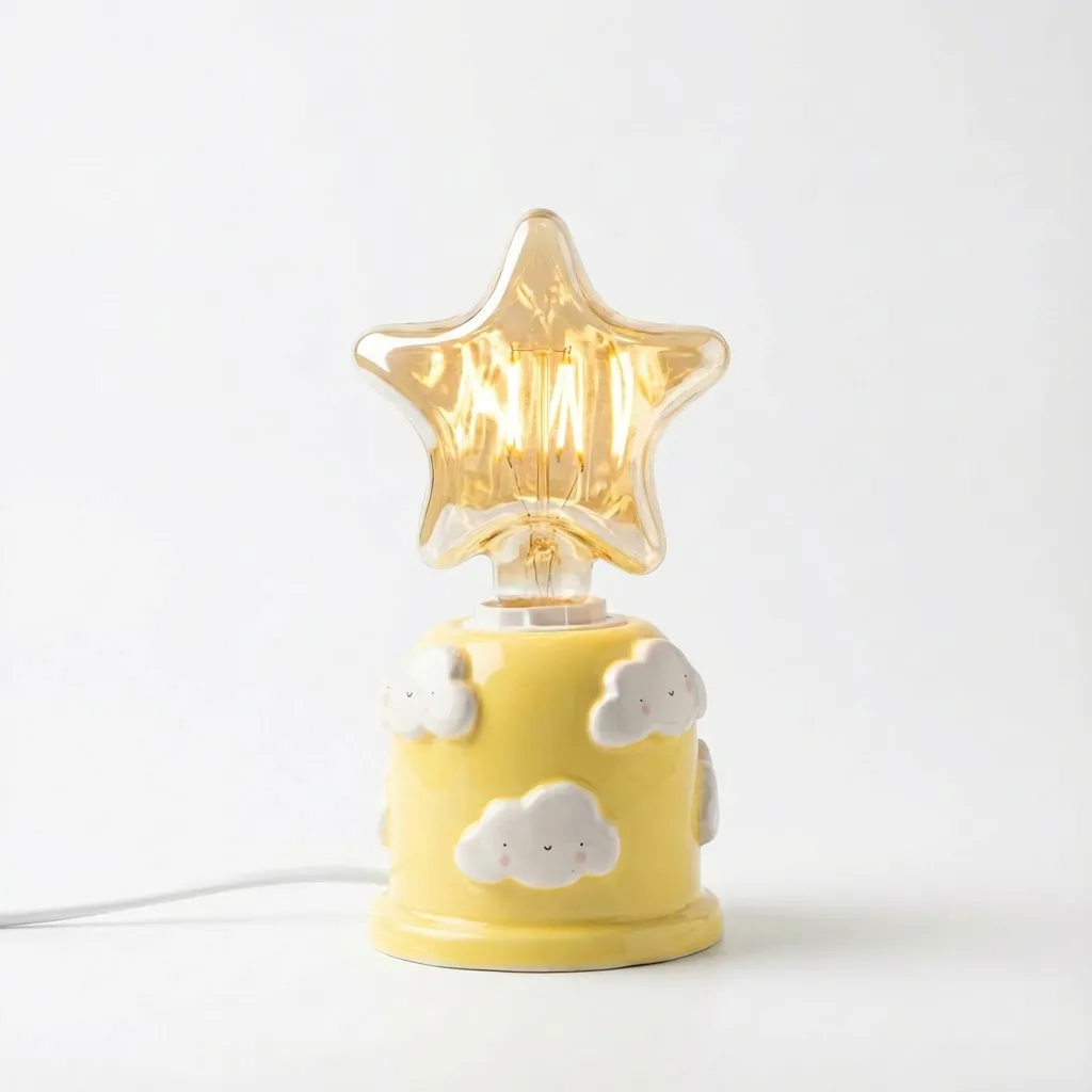 آباژور سرامیکی ابرهای مهربون ترکیبی دلنشین از نور ملایم و طراحی کودکانه و احساسی است. بدنهی سرامیکی با ابرهای برجسته و لبخنددار، در کنار لامپ ستارهای، فضایی گرم و دوستداشتنی ایجاد میکند که هم برای دکور و هم برای نورپردازی ملایم فوقالعاده است.